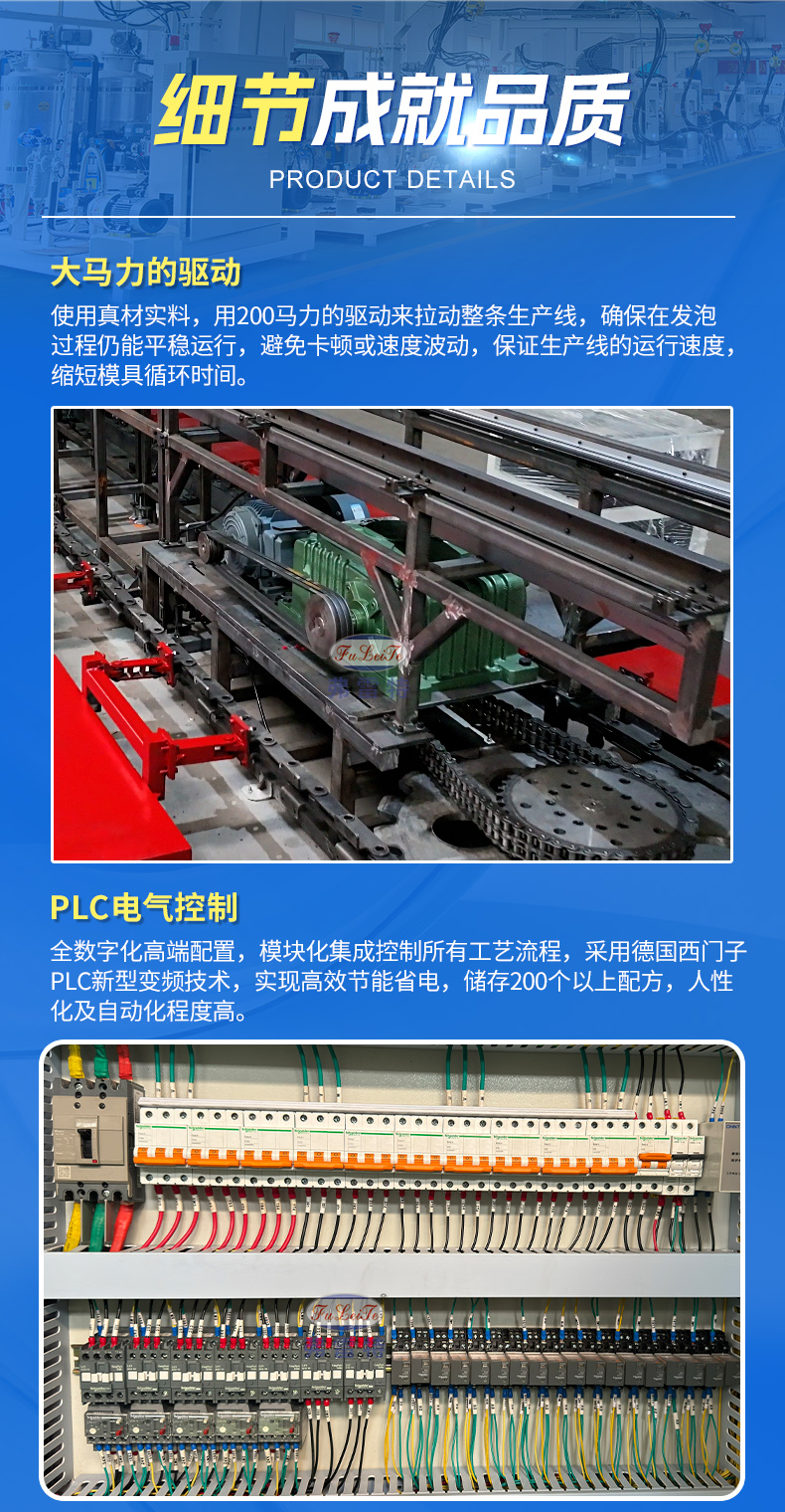 这是一条长33米带有40个工位的车载冰箱大型环形发泡生产线。这条生产线的优点是占地面积小,每个工位可负载1.5-1.8吨的重量。常应用于车载冰箱、保温箱、热水器、汽车内饰等领域。做到高产能、负载量高。广东弗雷特是一家国家级高新技术企业,科技中小型企业,创新型企业和专精特新企业。